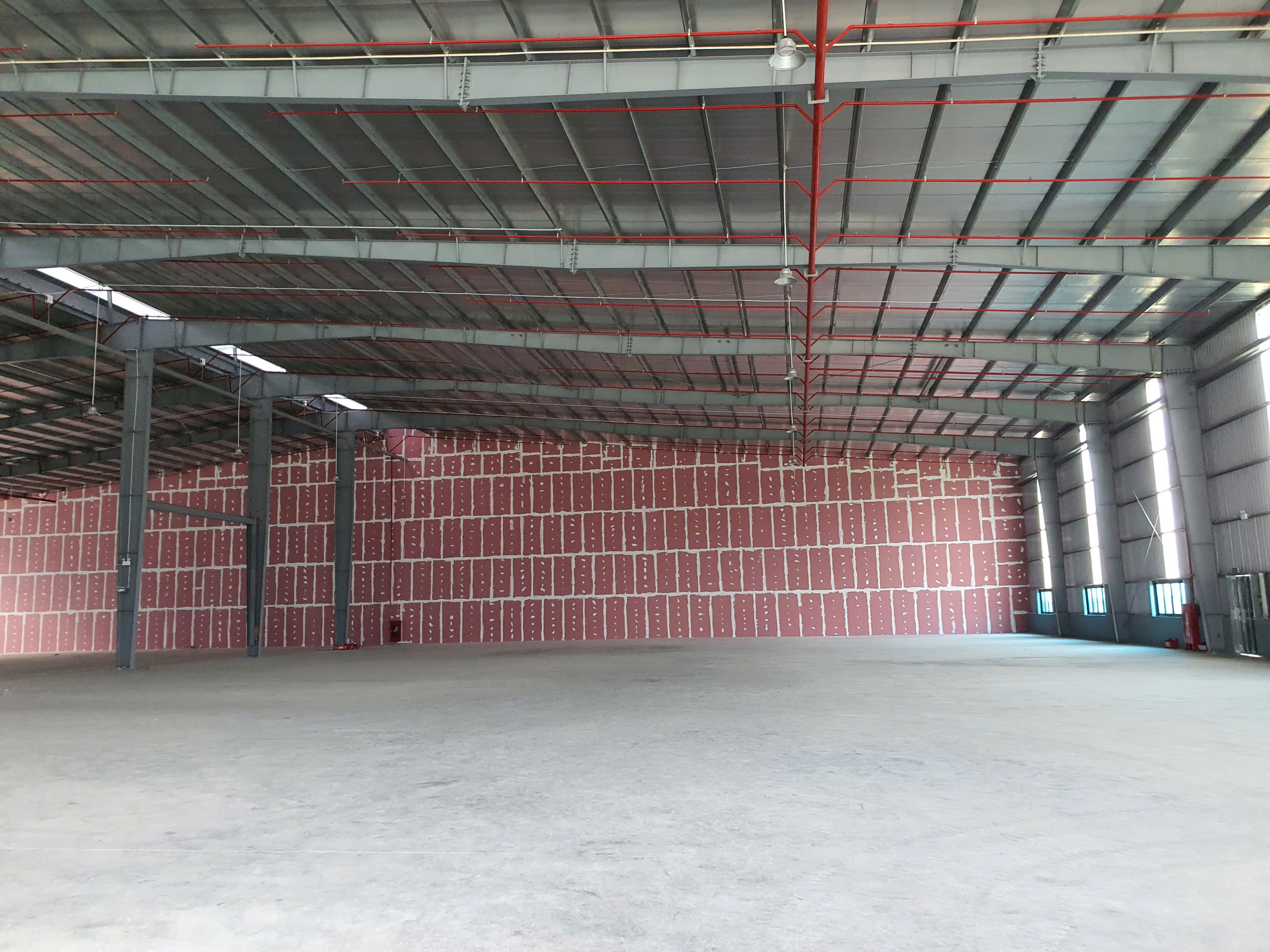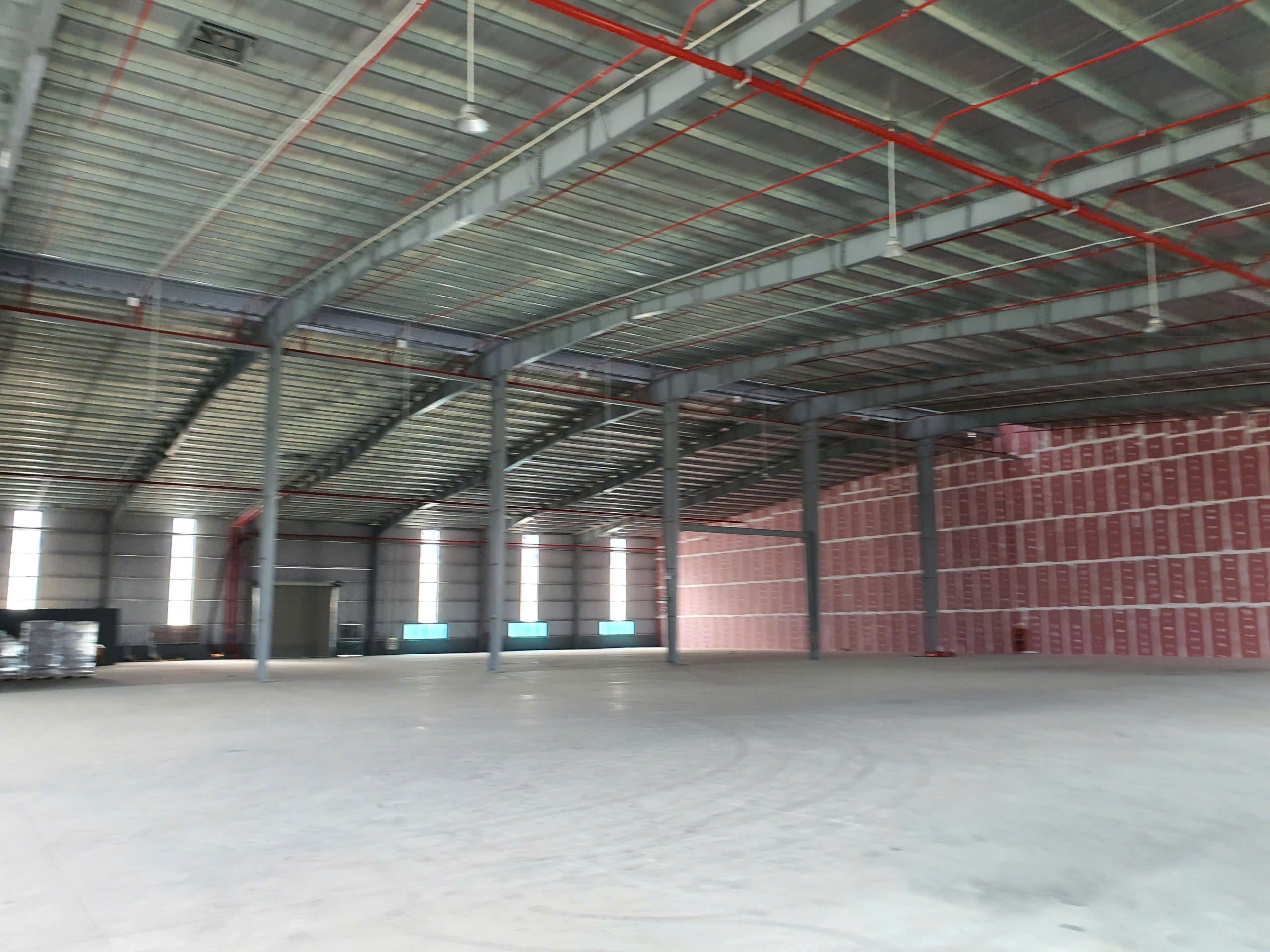 Cho thuê 1000 m2 diện tích nhà xưởng, chiều cao 13m, khuôn viên rộng thoáng sạch sẽ, kết cấu khung thép tiền chế, không có cột một mái, tường xây bao xung quanh dựng bằng tôn tường và tôn mái, điện 500 KVA.